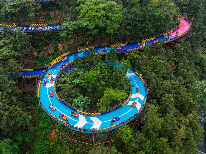 【峽道飛車(chē)】古龍峽“峽道飛車(chē)”全長(zhǎng)3680米,猶如一條天路盤(pán)旋在巍峨的古龍山脈之上,蜿蜒起伏,一彎接一彎,是目前國(guó)內(nèi)最長(zhǎng)、彎道最多的山道滑車(chē)項(xiàng)目。九曲二十八彎,實(shí)至名歸。